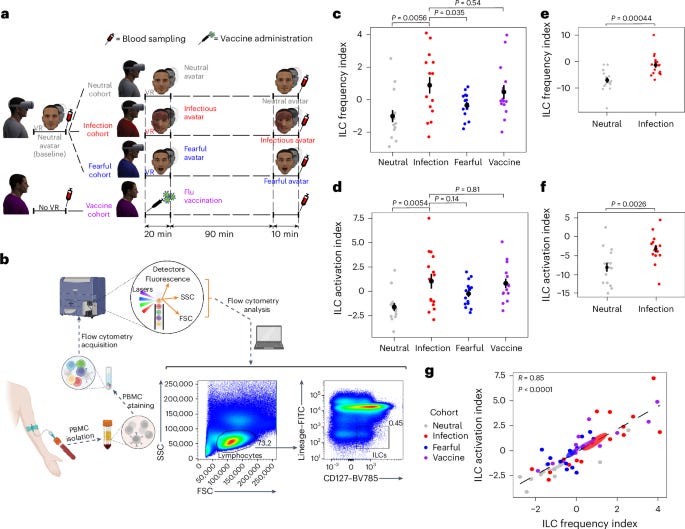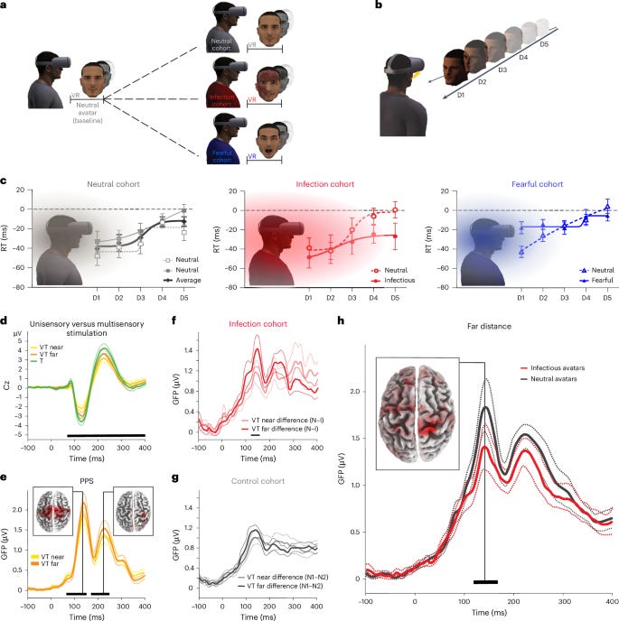 Trabanelli S, Akselrod M, Fellrath J, Vanoni G, Bertoni T, Serino S, Papadopoulou G, Born M, Girondini M, Ercolano G, Ellena G, Cornu A, Mastria G, Gallart-Ayala H, Ivanisevic J, Grivaz P, Paladino MP, Jandus C, Serino A. Neural anticipation of virtual infection triggers an immune response. Nat Neurosci. 2025 Sep;28(9):1968-1977. doi: 10.1038/s41593-025-02008-y. Epub 2025 Jul 28. PMID: 40721674; PMCID: PMC12411218. https://pubmed.ncbi.nlm.nih.gov/40721674/