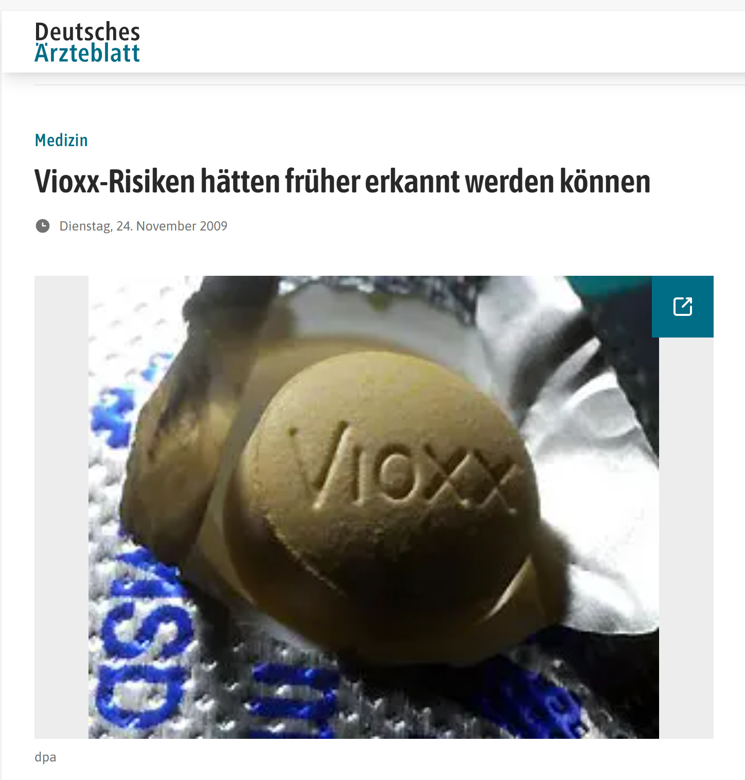 Ärzteblatt, D. Ä. G. R. D. (n.d.-i). Vioxx-Risiken hätten früher erkannt werden können. Deutsches Ärzteblatt. https://www.aerzteblatt.de/news/vioxx-risiken-haetten-frueher-erkannt-werden-koennen-d527effa-1e91-4149-9345-ff74d2121bd5