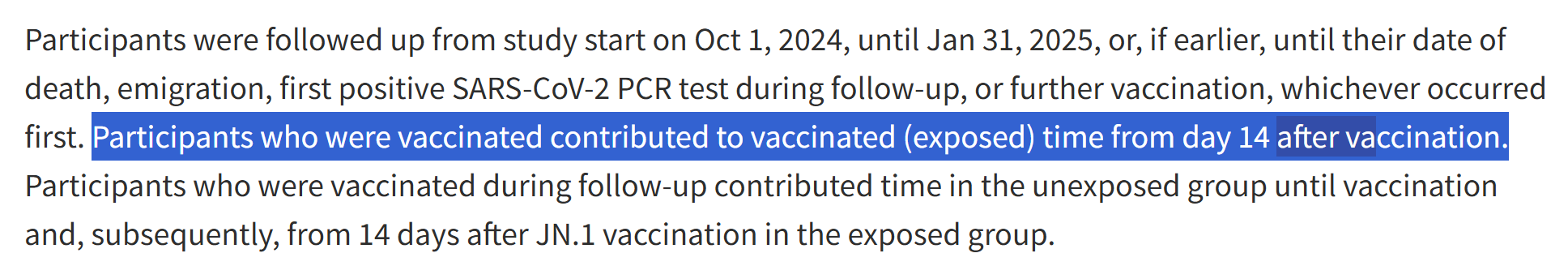 “Teilnehmer, die geimpft wurden, trugen ab dem 14. Tag nach der Impfung zur geimpften (exponierten) Zeit bei.”11