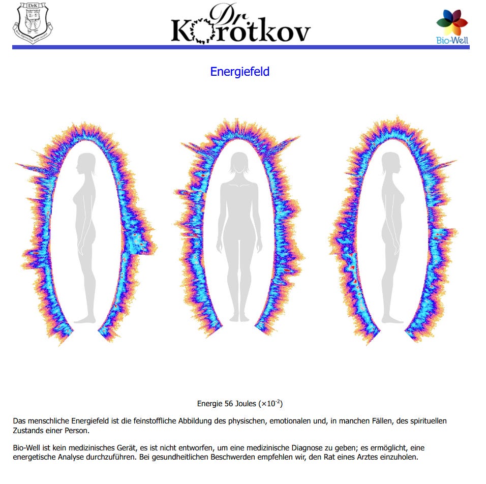 Bei alternativen Verfahren wir Kirlianfotografie bin ich auch unauffällig, obwohl das System Orgon-Bestrahlung detektiert hat und bei meiner Sportverweigerung richtig lag.