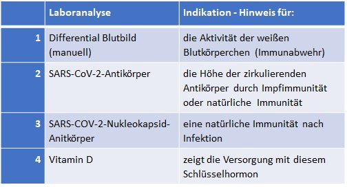Für die Blutanalysen (2-4) sind in den meisten Fällen die Kosten selber zu tragen.