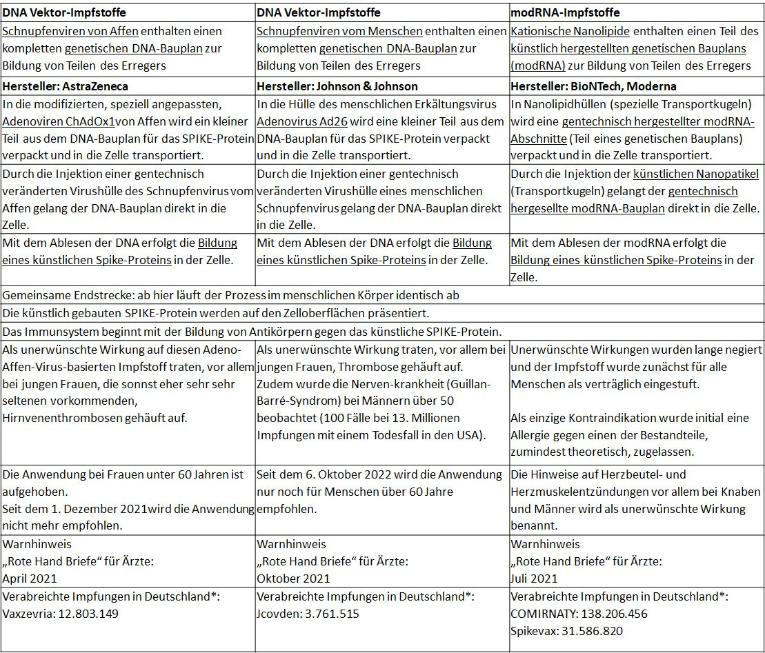 Es gibt sehr viele offene Fragen, welche uns weder die Hersteller, noch das Robert-Koch-Institut (RKI) oder das für die Kontrolle von Impfstoffen zuständige Paul-Ehrlich-Institut (PEI) bisher schlüssig beantwortet haben.