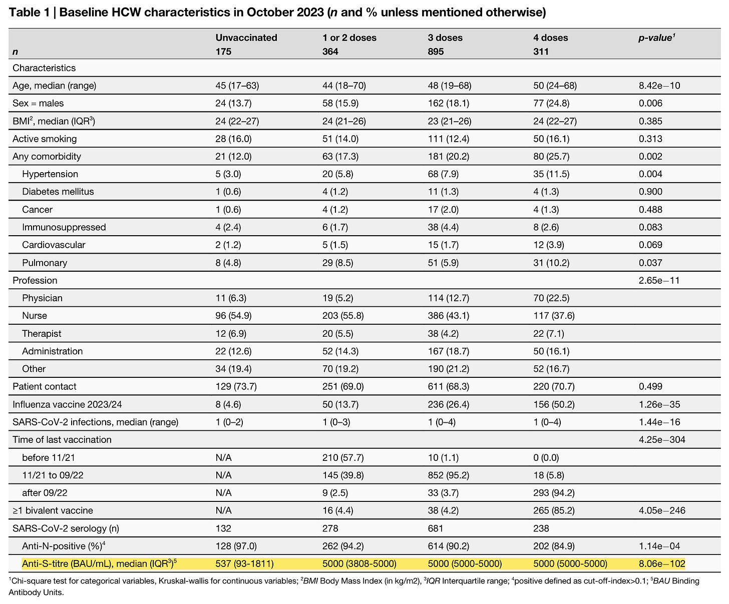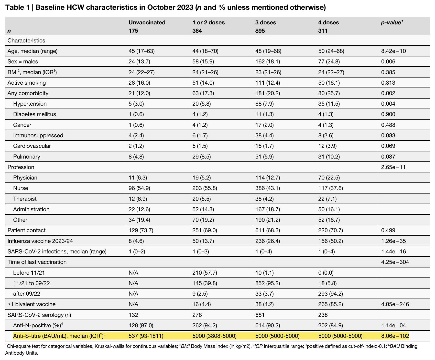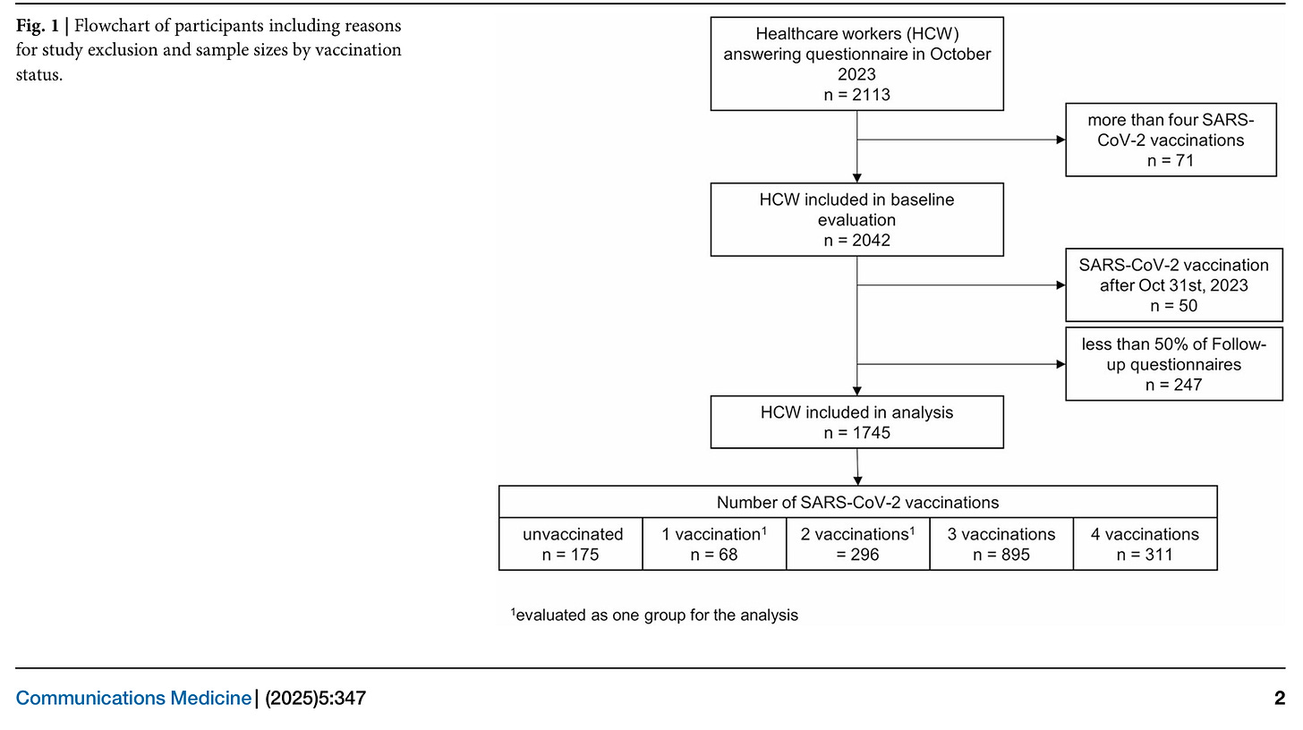 Dörr, T., Lacy, J., Ballouz, T., Cusini, A., Grässli, F., Haile, S., Kocan, E., Möller, J. C., Puhan, M. A., Schlegel, M., Von Kietzell, M., Rütti, M., Stocker, R., Gysin, D. V., Kahlert, C. R., Kuster, S. P., & Kohler, P. (2025). Association of SARS-CoV-2 vaccination status with risk of influenza-like illness and loss of workdays in healthcare workers. PubMed, 5(1), 347. https://doi.org/10.1038/s43856-025-01046-8