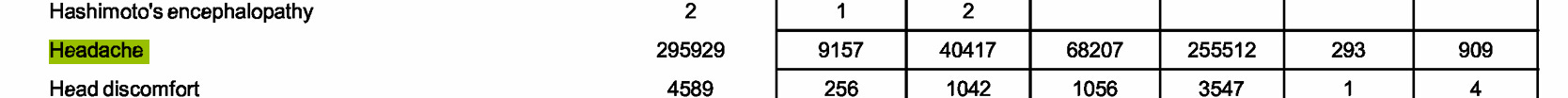 Kopfschmerzen sind eine sehr häufige Nebenwirkung der modRNA-Injektionen. Im Falle von BNT162B2 sind die Kopfschmerzen im PSUR 3 sehr auffällig.